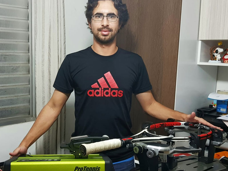 Carmo Vinieri ,apaixonado por tênis dês de criança ,sempre gostou muito de se aprimorar nas técnicas de encordoamento e por isso em Abril de 2018 foi participar de um curso da associação europeia de encordoadores em São Paulo.